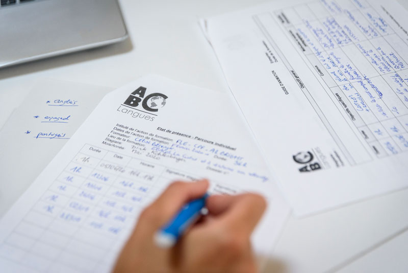 ABC Langues suit la progression et la qualité de votre parcours de manière régulière. Vous pouvez contacter à tout moment Céline Bérenger (contact@abclangues.com) pour le suivi pédagogique et administratif.